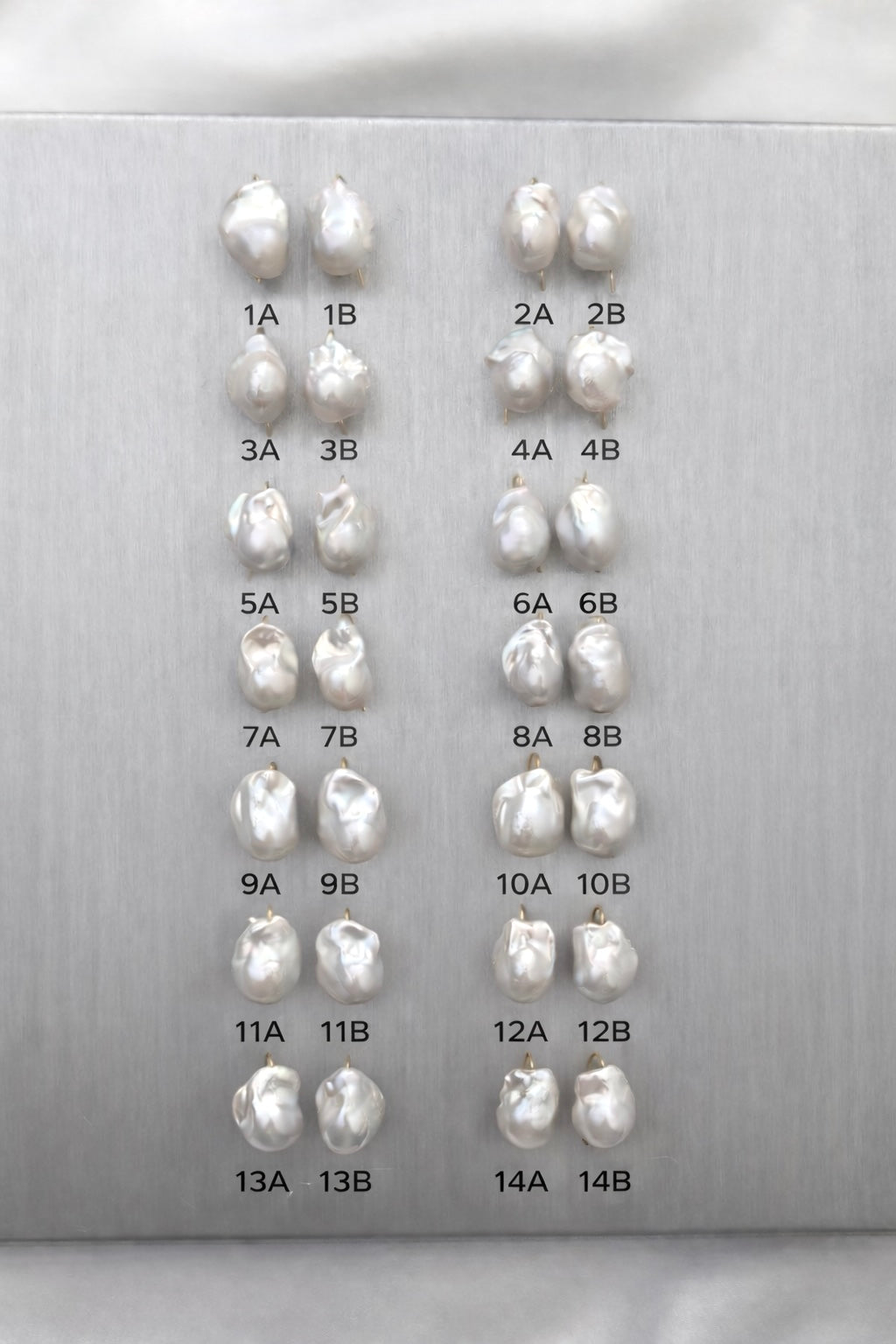 Snow White-øreringene kan mixes og matches på kryds og tværs – og du kan også vælge kun at købe én enkelt ørekrog 🐚 De sælges nemlig stykvis. Jeg har dog gjort det nemt for dig ved at vise, hvilke perler der passer smukt sammen som sæt, hvis du foretrækker det. For eksempel matcher ørering 1A og 1B hinanden rigtig fint.