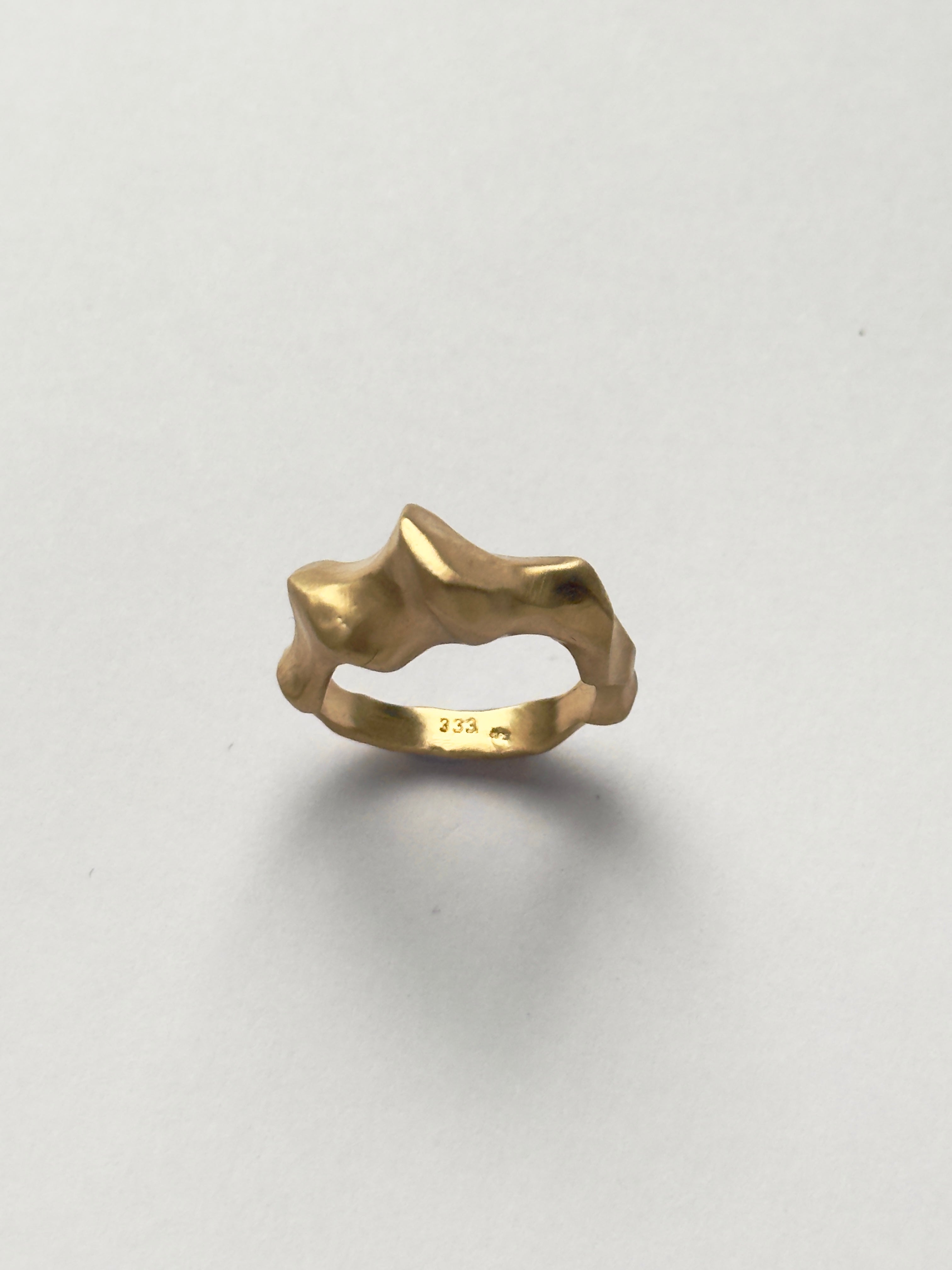 Ringen er lavet i solid 8 karat guld. Der er kun denne ene og den passer en ringstørrelse 52.